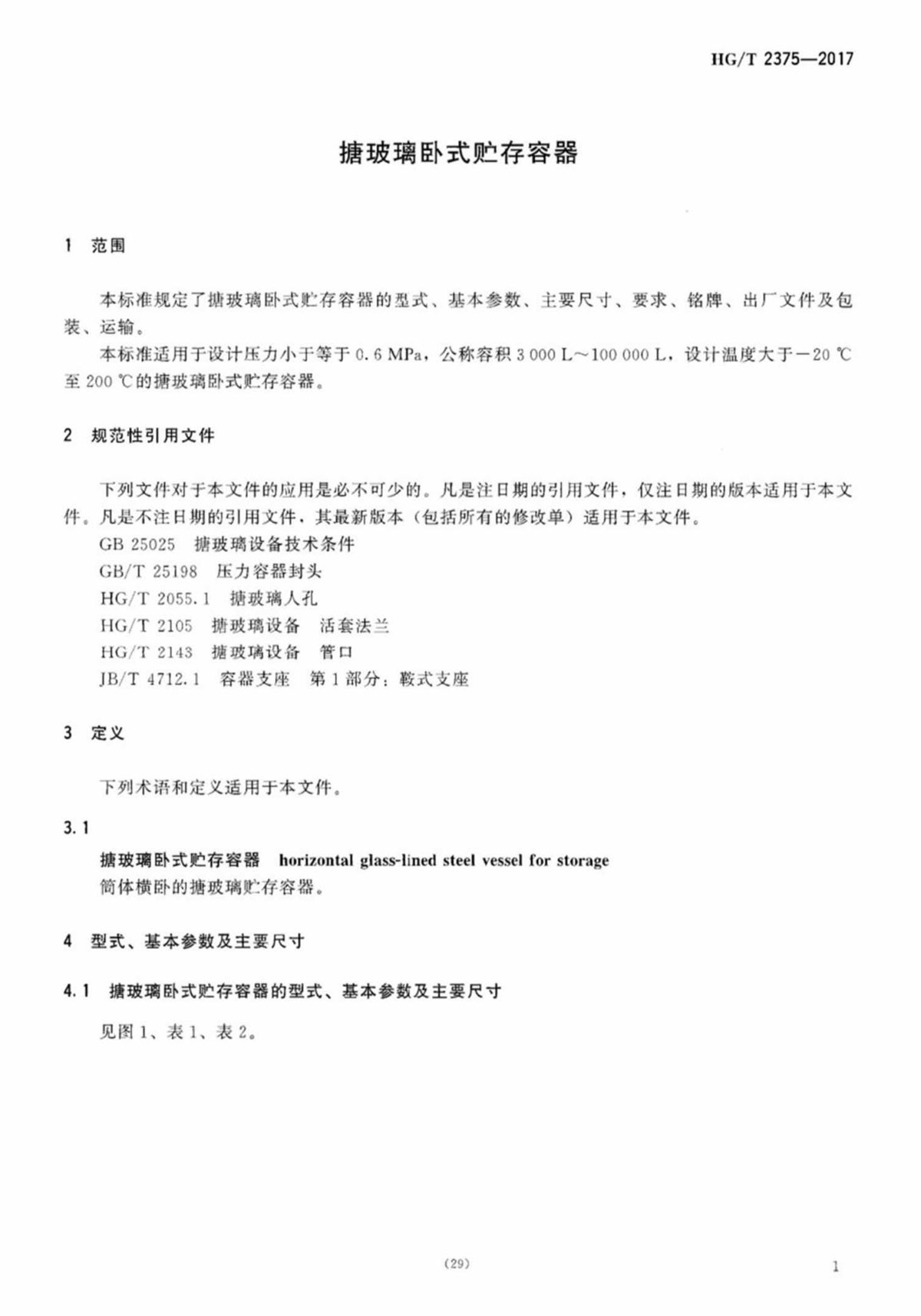 HG-T-2374-2017搪玻璃閉式貯存容器